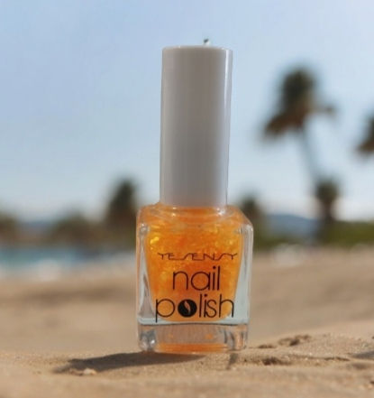 Vernis a ongles jaune oranger paillettes 389